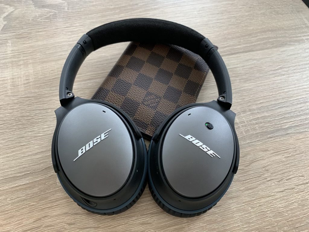 Eines meiner wichtigsten Stücke – meine geliebten Bose Kopfhörer. Wir haben die Kopfhörer hier auf der Seite schon mehrfach vorgestellt, schlicht und ergreifend weil sie für uns die besten sind. Mit der Noise Cancelling Funktion kann man sich wunderbar von allen Umgebungsgeräuschen abschirmen. Die passende platzsparende Box und der Flugzeugadapter machen aus ihnen ein perfektes Produkt.