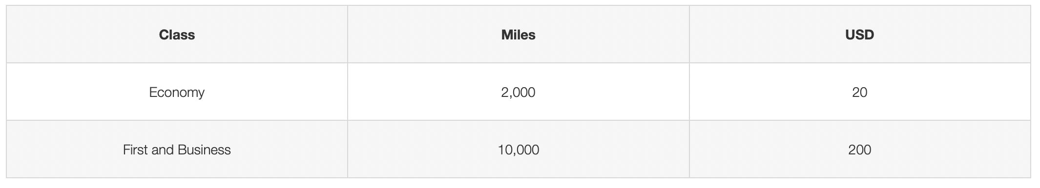 Dabei sind die Werte pro Meile bei First- und Business Class Tarifen übrigens höher, als in der Economy Class.