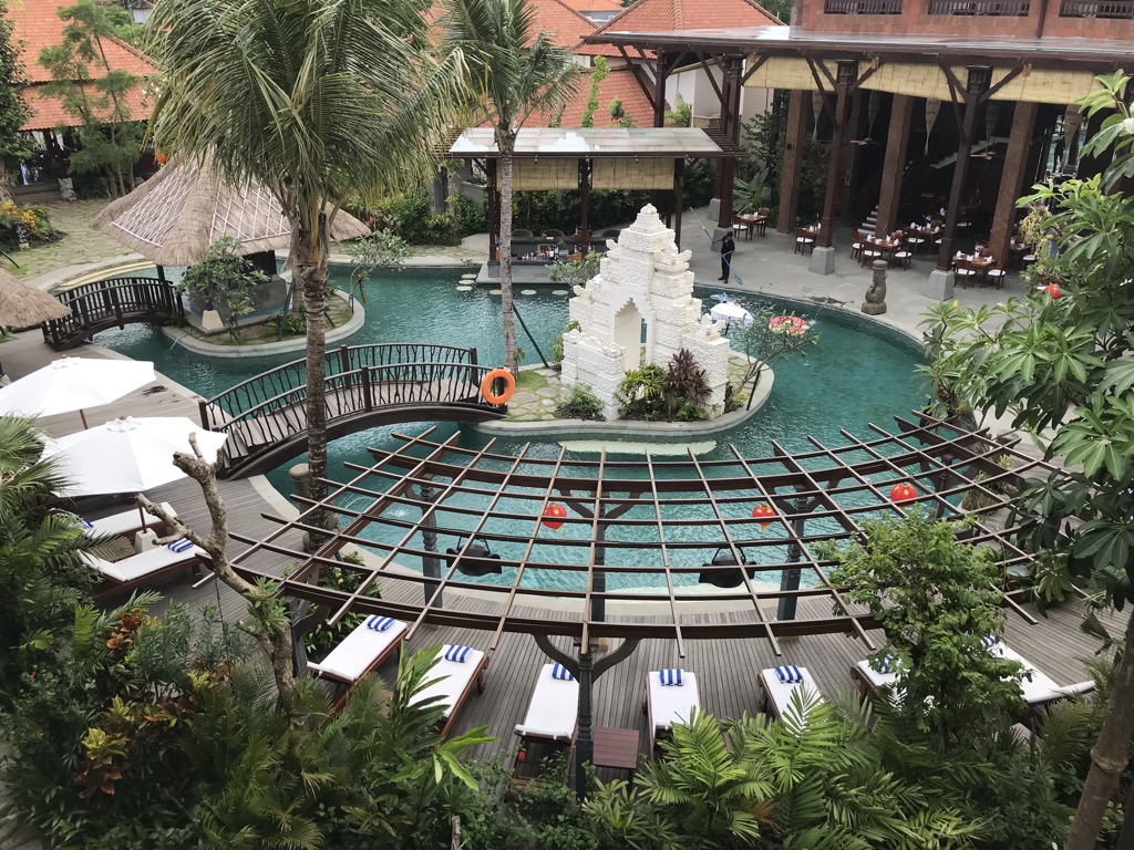 So kamen ein paar Ansprüche zusammen. Ein Anliegen von Christoph (eigentlich schon beim letzten Urlaub) war, alle Hotels der Hilton Kette auf Bali zu besuchen. Deshalb und aufgrund unserer späten Ankunftszeit (21:00 Uhr), habe ich für die erste Nacht das Hilton Garden Inn am Flughafen für 5000 Hhonors Punkte gebucht. Für die nächsten beiden Tage hatte ich ein tolles kleines Boutiquehotel für 85€ pro Nacht in Sanur entdeckt. Um anschließend wieder Christophs Bedürfnis nachzugehen, wurde eine Nacht im Hilton Bali für 92€ gebucht. Den Abschluss werden wir im Indigo Bali machen. Dieses Hotel habe ich über Booking.com gefunden und es hat mich sofort angelacht. Das Hotel liegt in Seminyak und kostet pro Nacht etwa 210€.