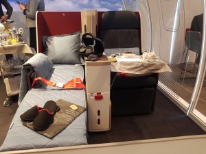 In der Boeing 787-9 nach Bali, bietet Turkish Airlines die neue Business Class an, welche sich in ein komplett flaches Bett verstellen lässt und in welcher jeder Passagier direkten Zugang zum Gang hat.