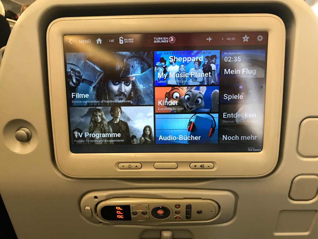 Da auf meinem ersten Segment von Hannover nach Istanbul-Ataturk bereits alle Fensterplätze in den Notausgangsreihen belegt waren, musste ich mit einem „normalen“ Fensterplatz, in diesem Fall 14F, Vorlieb nehmen. Der Sitzabstand war dennoch für die Kurz- und Mittelstrecke in Ordnung.