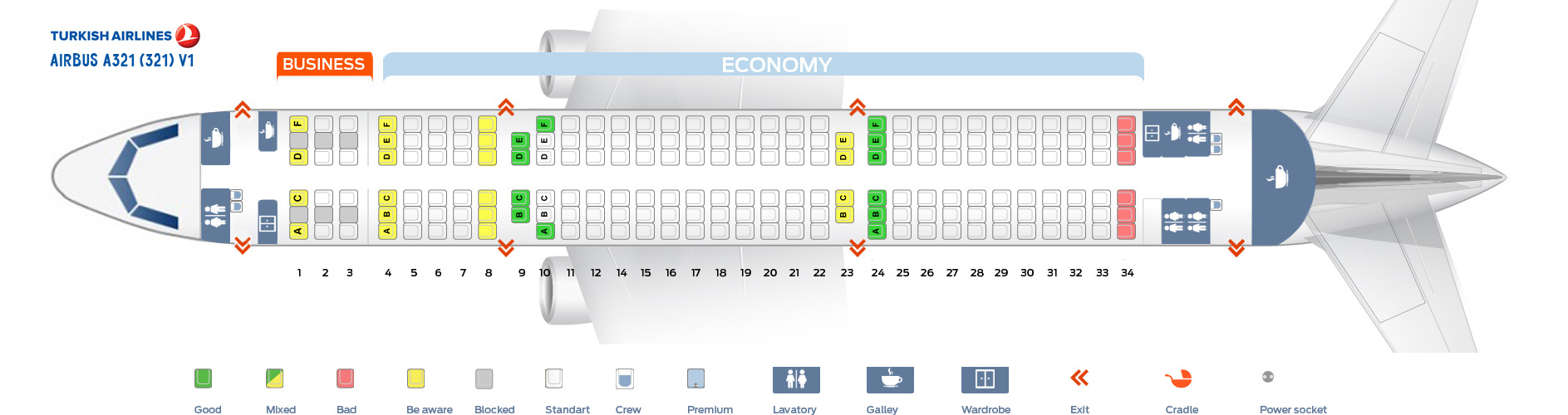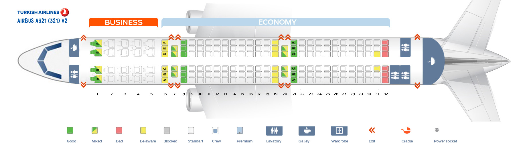 Turkish Airlines Economy Class im Airbus A321 – Sitzplätze