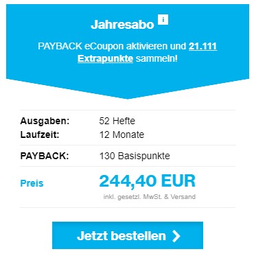 - Führt den Bestellvorgang auf der Aktionsseite von Burda Direct durch. Vergesst dabei nicht, Eure Payback-Nummer anzugeben.