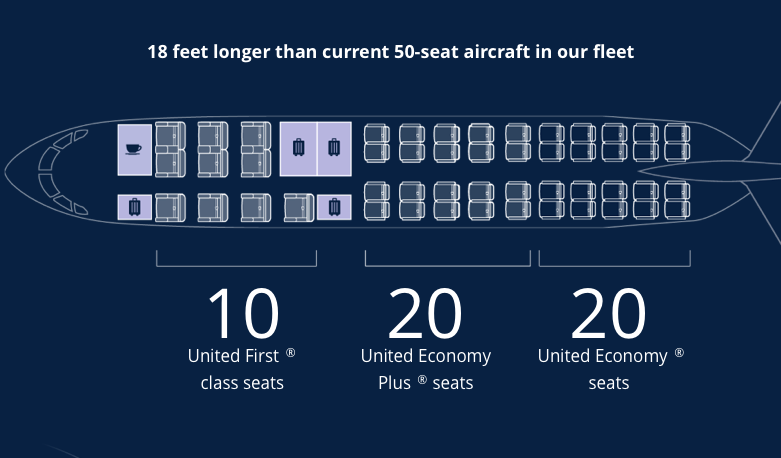 Dafür wird United auch die CRJ550 als „Premium Regionaljet“ ausstatten und man wird 10 First Class Sitze, 20 Economy Plus (also Economy Sitze mit mehr Sitzabstand) und 20 Economy Class Sitze verbauen.