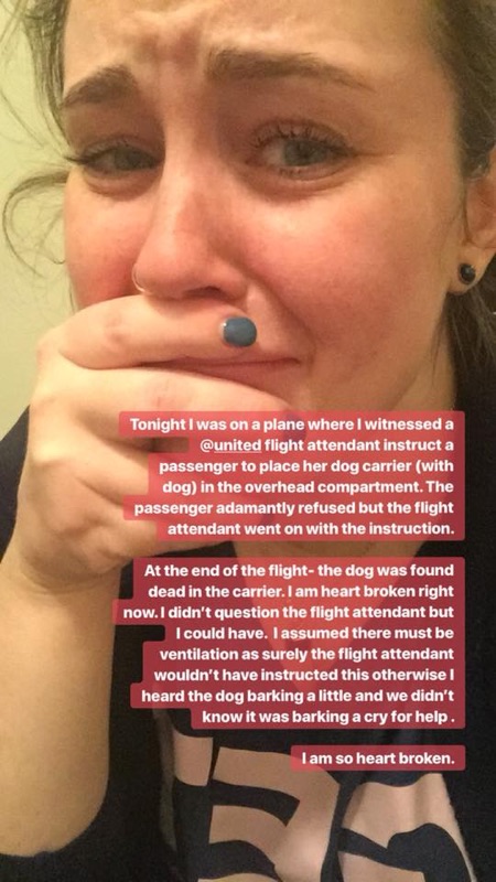 Das enorme mediale Interesse an United Airlines und dem Umgang mit Hunden entstand, als auf einem Inlandsflug eine Passagierin, welche mit einem Welpen in der Kabine reiste, aufgefordert wurde, diesen im Overhead Bin zu verstauen.