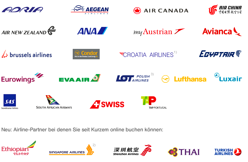 Aktuell lassen sich offiziell 26 Airlines bei Miles&More online buchen: