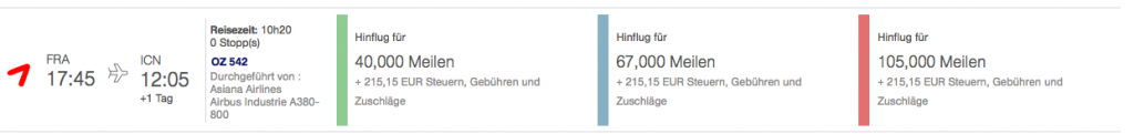 Asiana zeichnet sich insbesondere durch ihre extrem gute Verfügbarkeit bei Prämienflüge in der First und Business Class aus