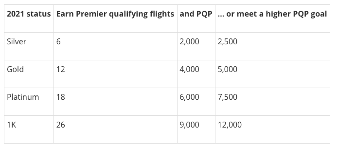 Bei United Airlines sammelt man den Status mehr oder weniger nach dem getätigten Umsatz. 2.000 PQP für den Silberstatus entsprechen 2.000 US Dollar Umsatz bei United Airlines. Mit den neuen Statusgrenzen für 2021 hat man die Werte direkt halbiert und wird damit das Erreichen eines Status deutlich vereinfachen.
