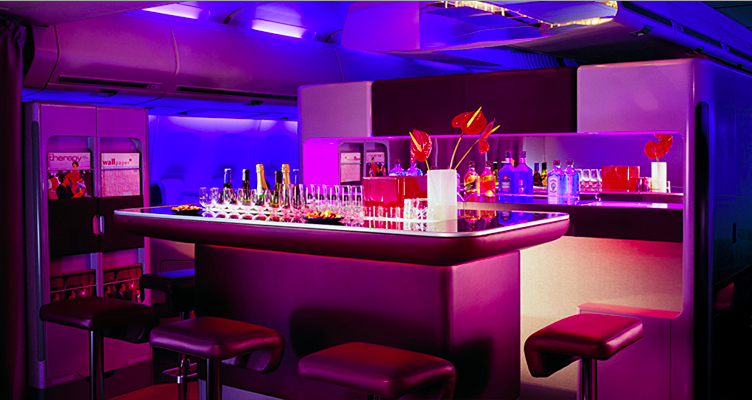 Die Virgin Atlantic Business Class bietet schon jetzt auf allen Sitzen ein komplett flaches Bett und direkten Gangzugang von jedem Sitz. Zusätzlich bietet Virgin Atlantic auch eine kleine Bar mit Barkeeper, an welcher sich Virgin Upper Class Gäste für einen Snack oder eine Unterhaltung zurückziehen können.
