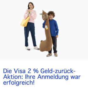 VISA bietet den Kunden der Kreditkarten in regelmäßigen Abständen eine Aktion in Form von Cashback an. Derzeit könnt Ihr Euch 2% des Transaktionsbetrages zurückholen. Dies gilt allerdings nur für kontaktlose Zahlungen im Handel bis zu einer Höhe von 25€. Um loslegen zu können, ist eine kurze Registrierung notwendig.