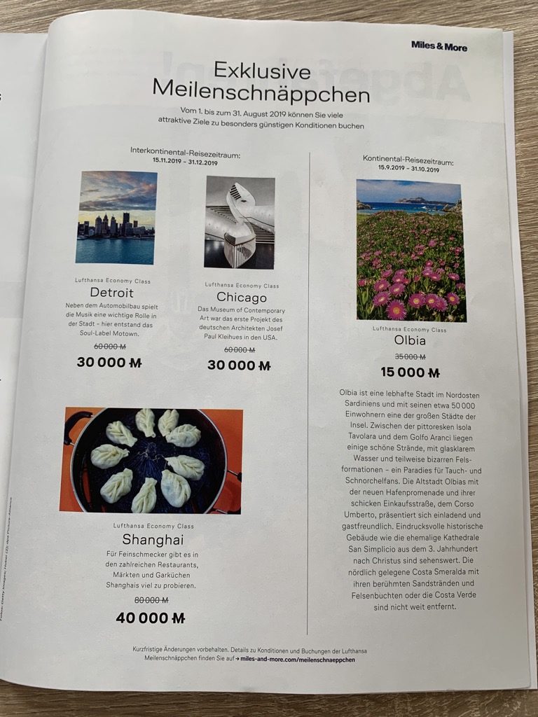 Vorschau Lufthansa Meilenschnäppchen im August 2019 | Ziele und Meilenpreise