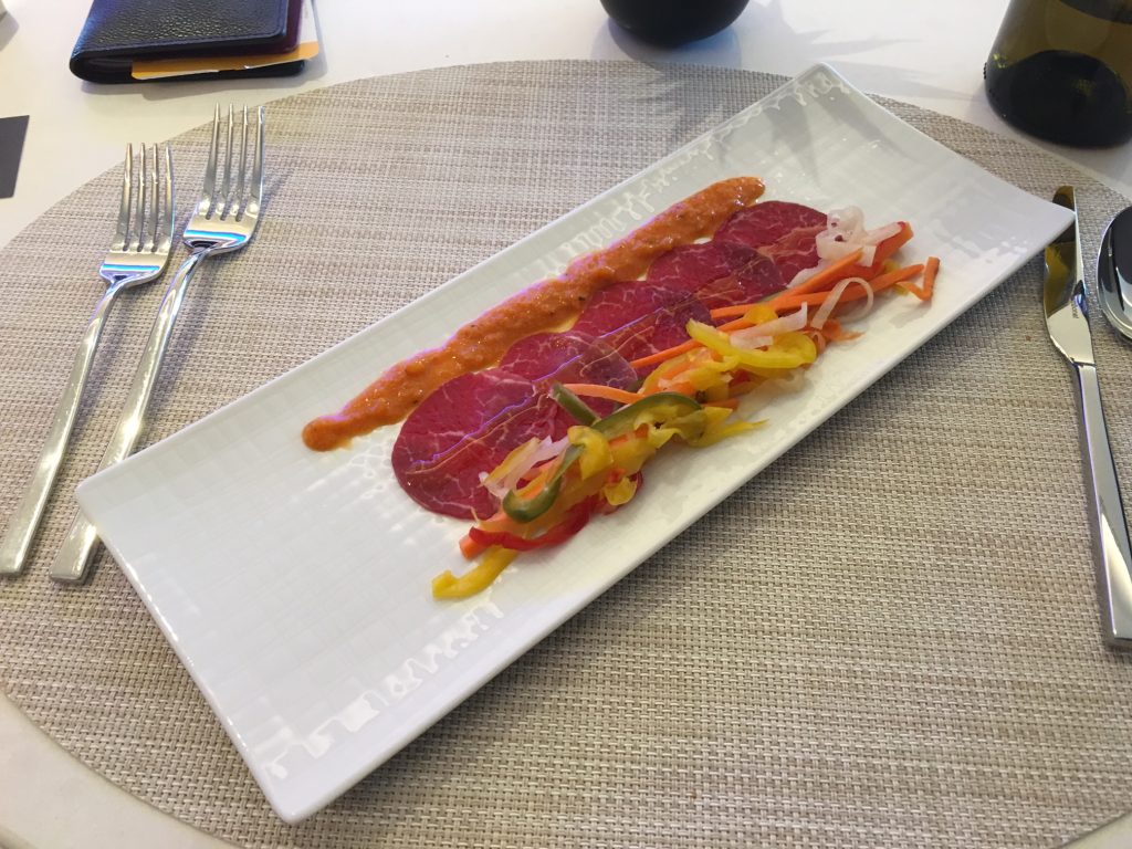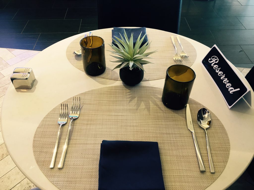 A la carte Dinning in der United Polaris Lounge in Chicago. Zugang haben internationale Business Class Passagiere, allerdings keine Star Alliance Gold Karten Inhaber, wenn sie in der Economy Class reisen.