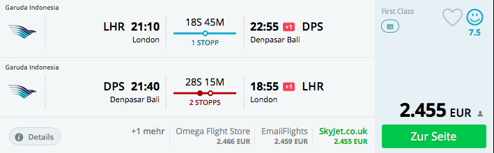 Bali ist sicherlich immer eine Reise wert! Bei diesen fantastischen Angeboten von Garuda Indonesia bin ich persönlich sehr verführt. Es gibt wohl kaum ein günstigeres und komfortableres Angebot, als in der Garuda Indonesia First Class von London nach Bali für unter 2.500 Euro zu reisen! Wer sich einen besonders tollen Urlaub gönnen möchte, dem kann ich nur empfehlen hier zuzugreifen.