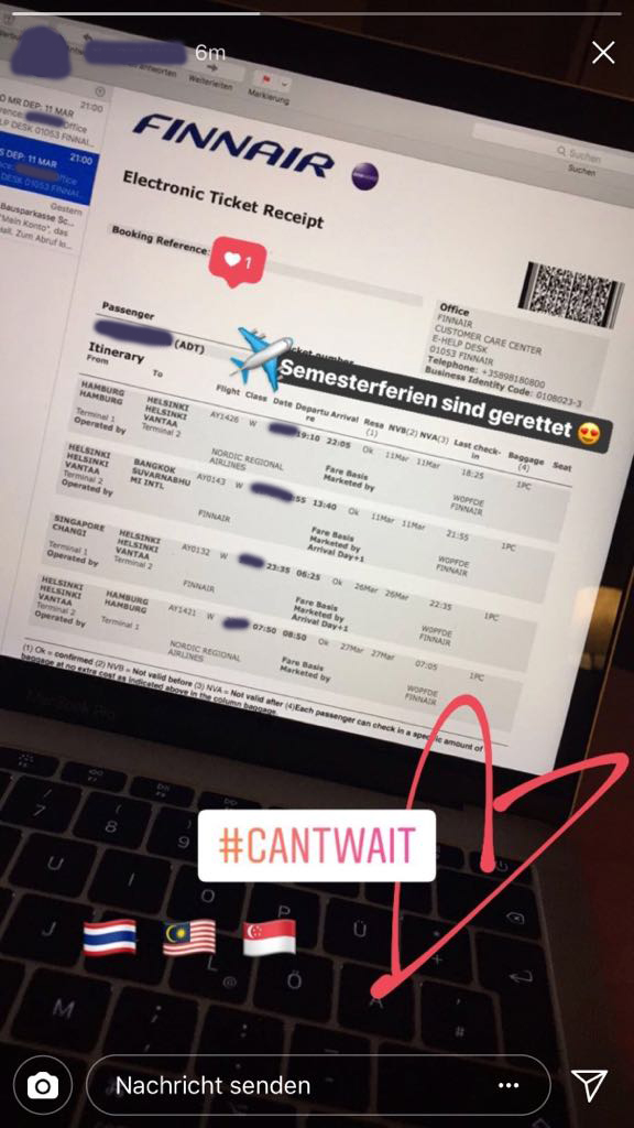 Ihr solltet daher stets darauf achten, dass die Buchungsnummer bzw. die Ticketnummer und/oder Euer Name zensiert sind, bevor Ihr einen derartigen Post öffentlich macht. Zudem sollten Reiseunterlagen auch in der Realität, z.B. am Flughafen, nie sichtbar öffentlich hingelegt werden!