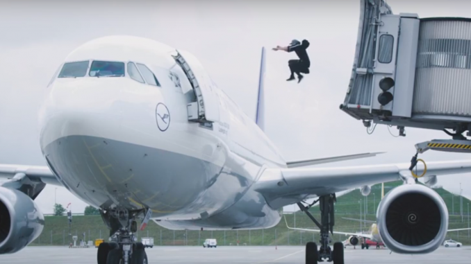 Dabei rennt, oder besser fliegt er durch einige Passagierbereiche des neuen Satelliten Terminals in München. Allerdings sind auch für Passagiere nicht zugängliche Bereiche, wie die Gepäckabfertigung vor ihm nicht sicher. Am Ende erreicht er einen Flug noch (wenn auch nicht seinen), auch wenn er dafür einen sehr beeindruckenden Sprung hinlegen muss. Glück gehabt, dass die Tür noch offen war 😉 !