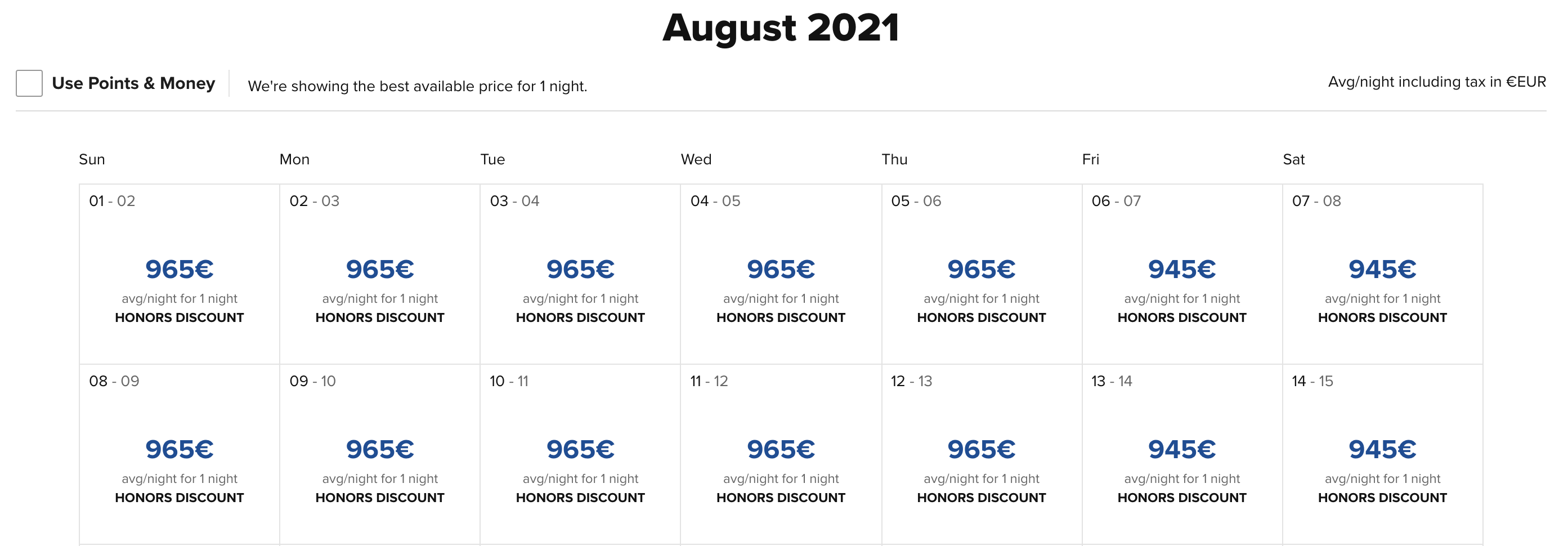 An einem späteren Termin beträgt der Preis 39.000 Punkte oder 101€ (€-Preise für Hilton Honors Teilnehmer – auch ohne Status).